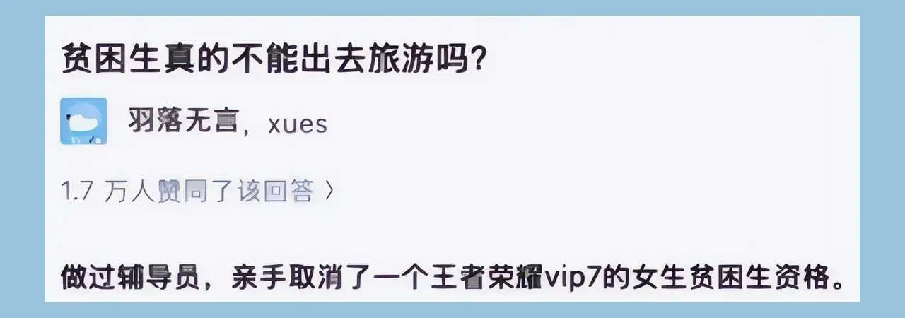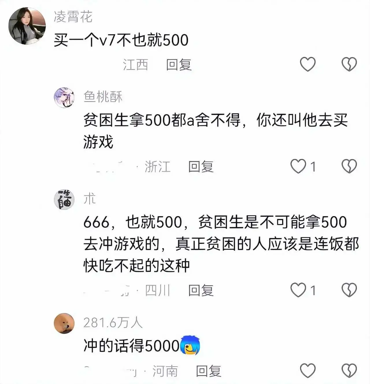 什么才是真正的穷呢?某大学辅导员直接撕了一个女学生的贫困生资格,理由简单粗暴到让人没法反驳这姑娘的王者荣耀账号,居然氪到了贵族7!女生当场崩溃大哭,对着辅导员吼得撕心裂肺:“难道穷人就不配娱乐吗?”这话一抛出来,评论区直接炸成了菜市场!一边是网友骂得唾沫横飞:“贵族7至少砸2000块!贫困生一年补助才1000-3000块,你这是把救命钱当游戏充值卡霍霍啊!”另一边却有人帮腔:“有钱人能滑雪潜水,穷人就只剩手机这点乐子了,凭啥不让玩?”